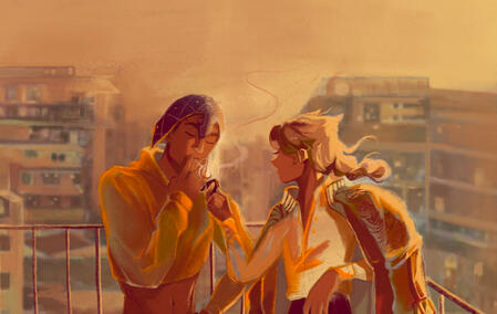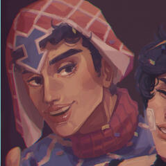 一日の時間を「日の出/正午/日没/夕暮れ/夜」と分けてジョルノとミスタ、2人を描くというテーマです。